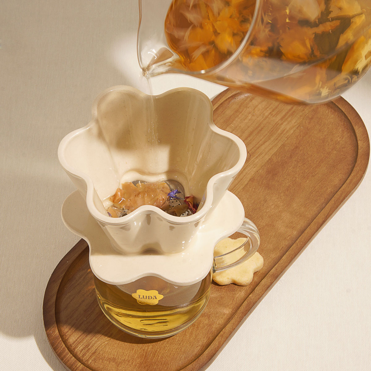 Cedzak został stworzony z myślą o codziennych rytuałach parzenia ziół i kwiatów. Napar lub herbatę najlepiej zaparzyć w ulubionym dzbanku – parzenie w naczyniu o większej objętości pozwala w pełni uwolnić aromat i smak. Następnie napój należy przelać przez cedzak, umieszczając go na czarce lub szklance, by odfiltrować fusy. Cedzak może również pełnić funkcję przykrywki podczas parzenia.