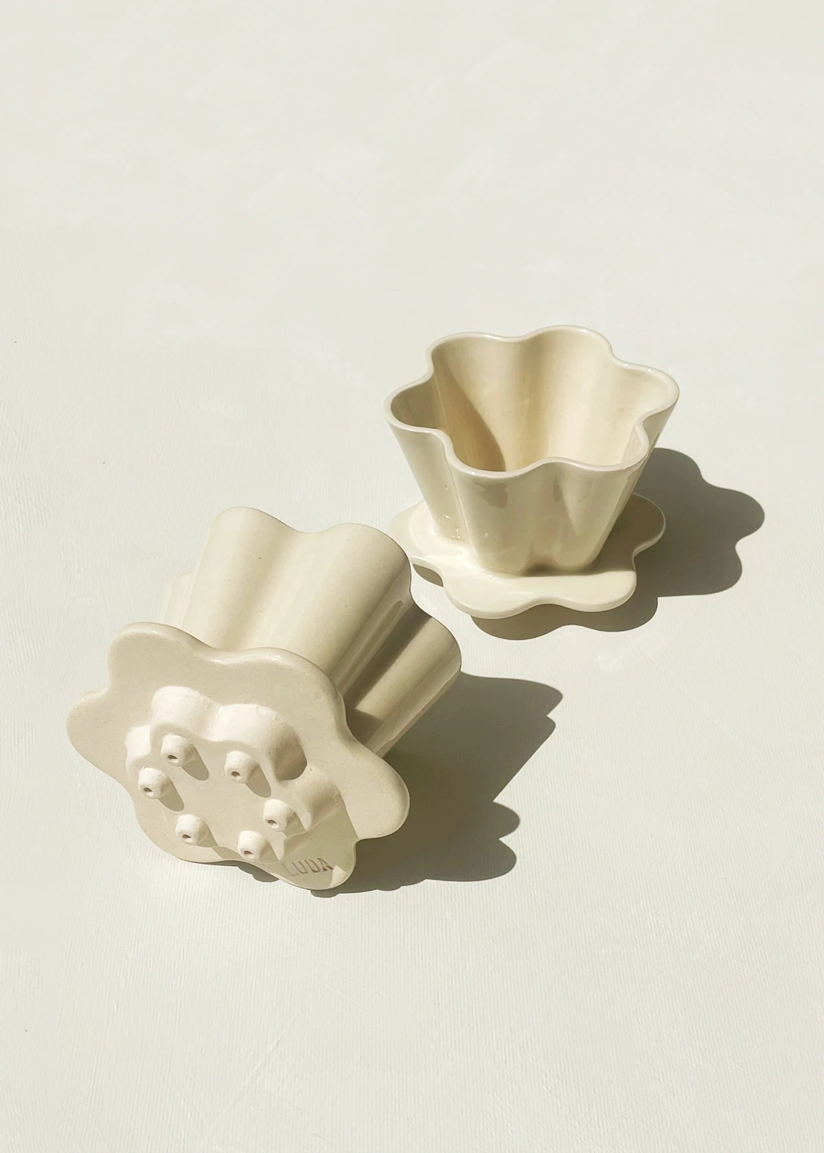Cedzak to nie był pomysł z dnia na dzień. To raczej marzenie – ciche, codzienne, podsuwane przez poranne rytuały, które zamiast spokoju przynosiły frustrację. Adam – współtwórca Ludy – miał dość przelewania naparu przez niewygodne zaparzacze, dziwne sitka i przypadkowe dzbanki, które nijak nie pasowały do prostoty i piękna, jakie niesie rytuał parzenia herbaty. Marzył mu się zgrabny, dedykowany obiekt – nie tylko praktyczny, ale i estetyczny. Taki, który bez wstydu stanie na półce. Taki, który dla herbaty będzie tym, czym dripper Kinto jest dla kawy.